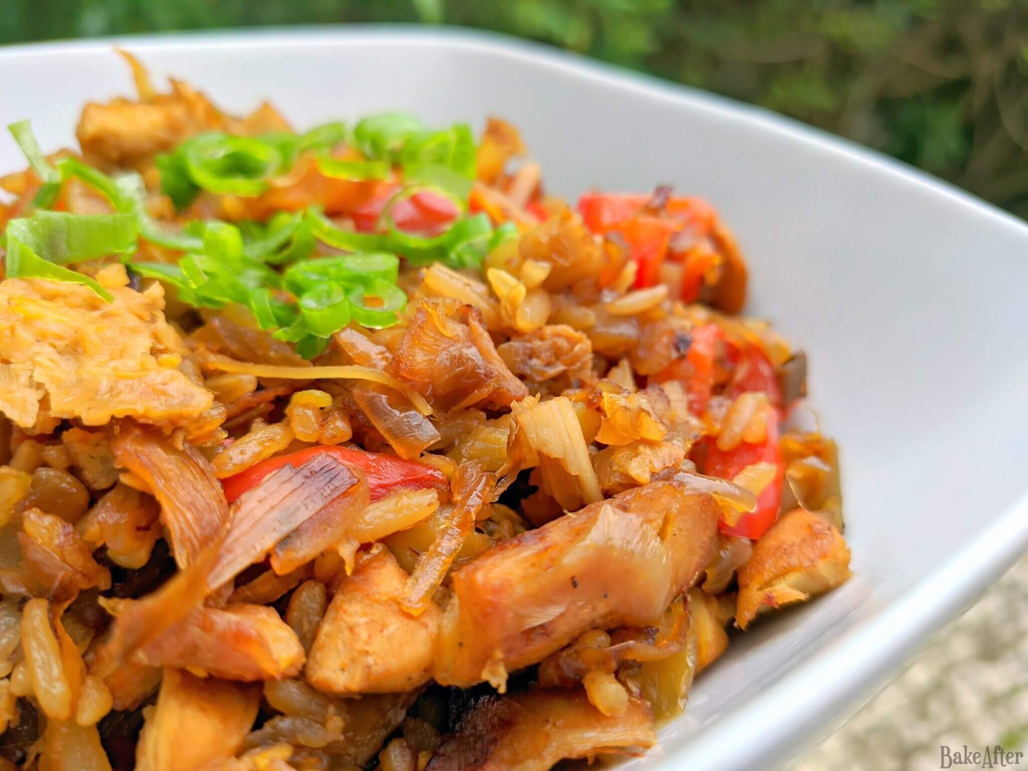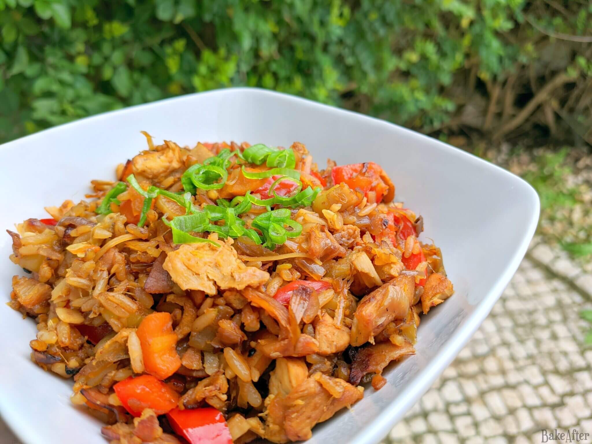 This recipe for Quick & Easy Teriyaki Chicken Fried Rice was originally created on BakeAfter.com. Esta receita de Arroz Frito de Teriyaki foi publicada em português no Iguaria.com.