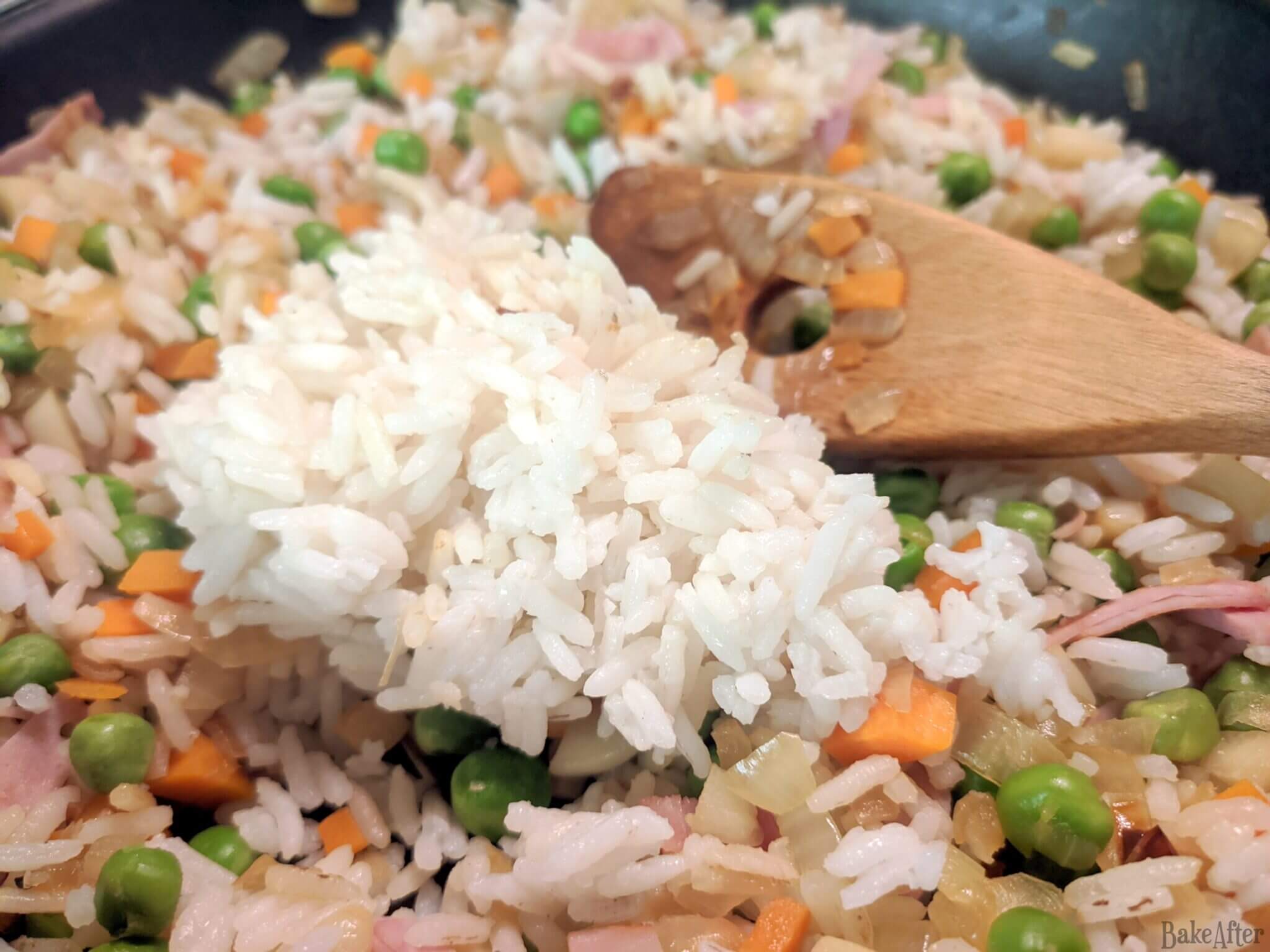 This recipe for Quick Curry Fried Rice with Mixed Vegetables and Ham was originally created on BakeAfter.com. Esta receita de Arroz Frito de Caril com Ervilhas e Fiambre foi publicada em português no Iguaria.com.