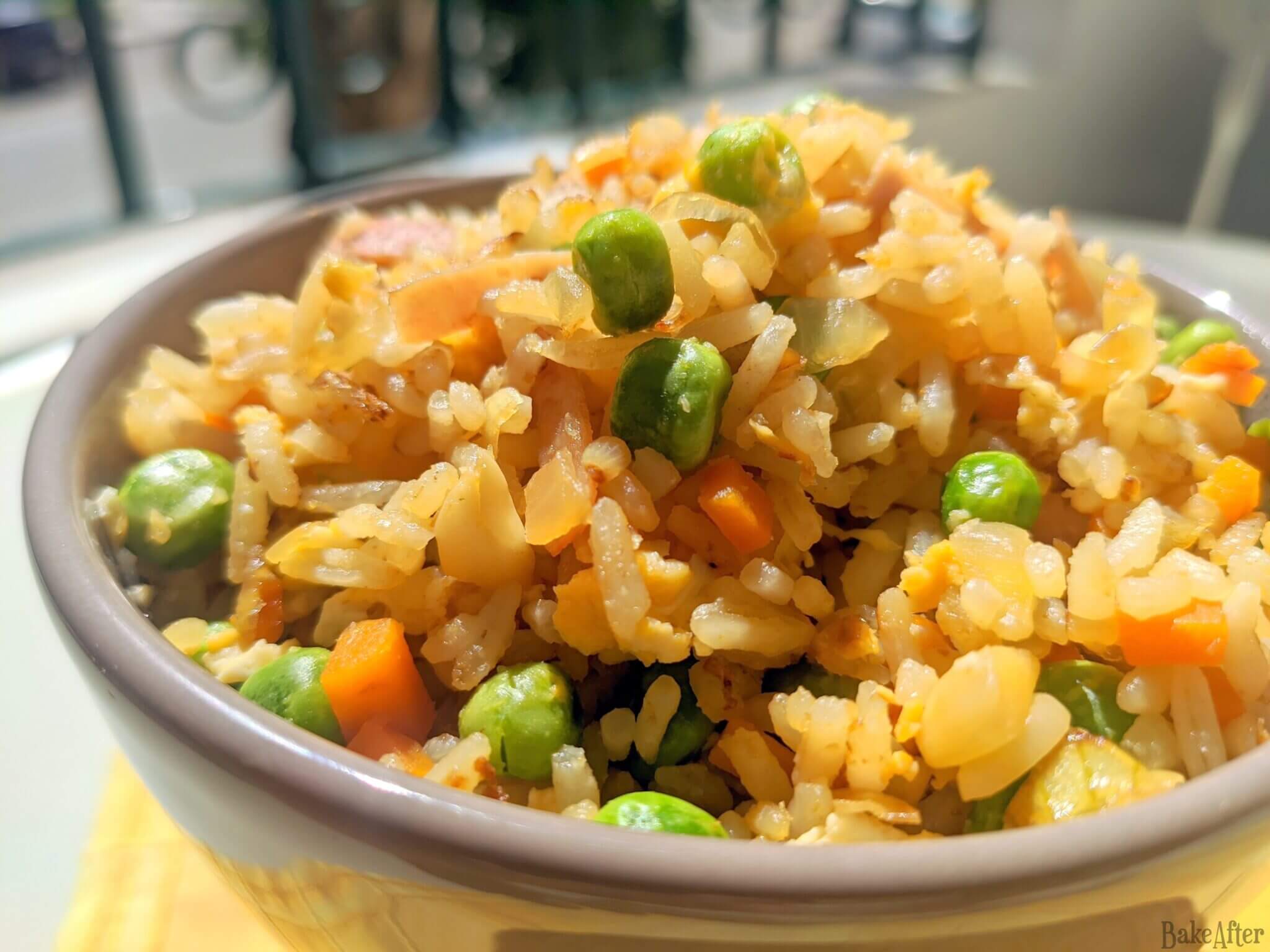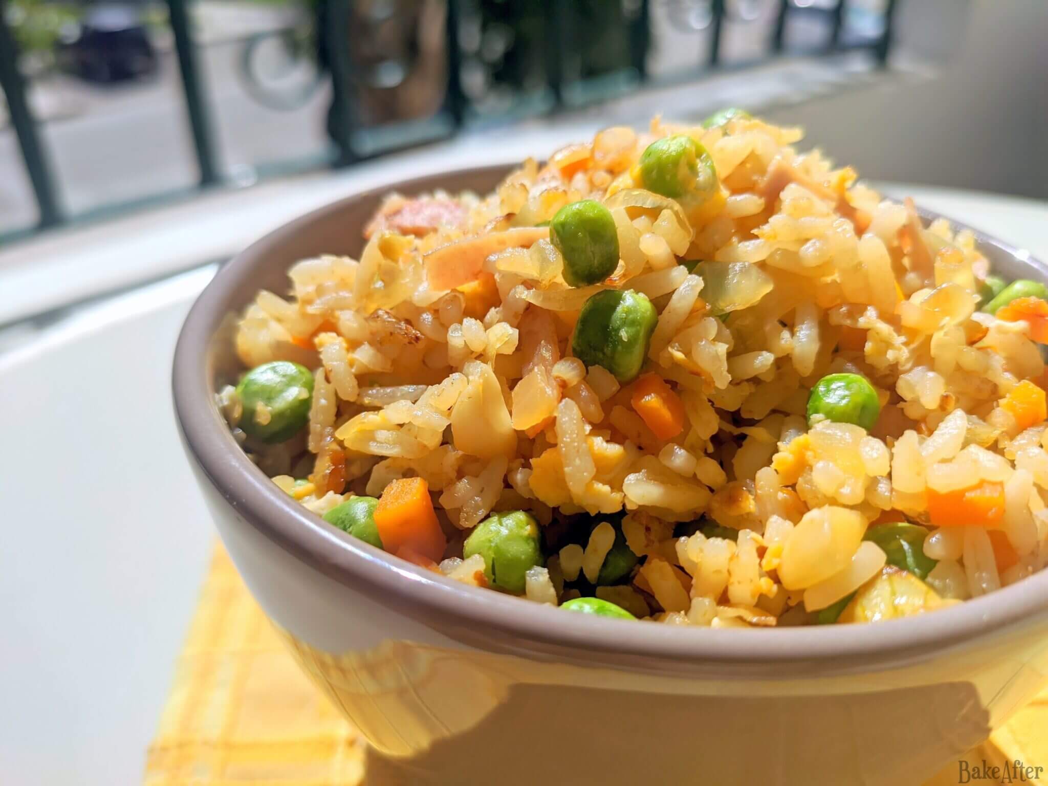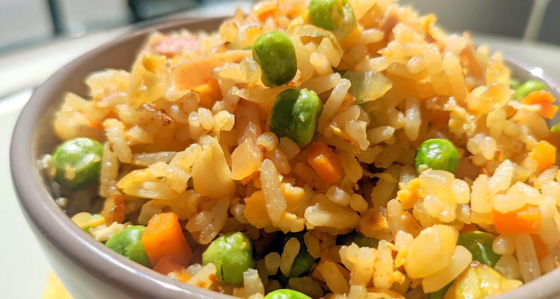 What can i say, this is a really simple but delicious fried rice recipe with peas and ham with a fragrant touch of curry.