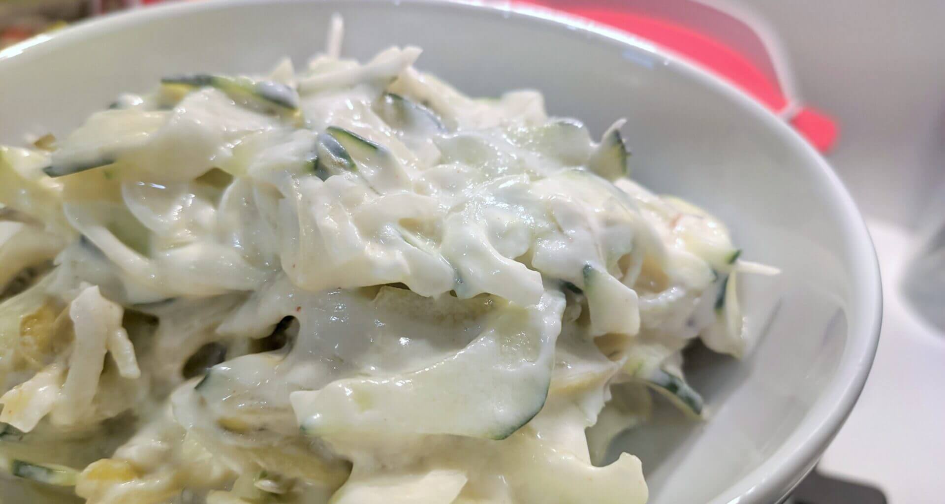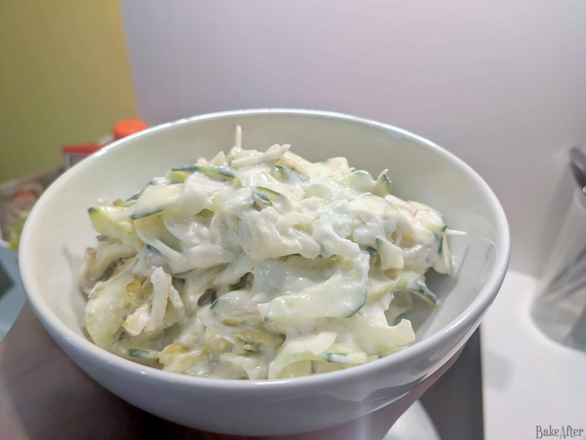 This is a variation of the classic Greek tzatziki sauce, and let me tell you, it’s the perfect side for a ton of things, from salads to sandwiches, grilled meats to crispy fries, and of course, stuffed into warm pitas. The big difference here is the texture. Instead of the typical finely minced approach, I slice everything super thin, almost like a mandoline situation, which gives you this gorgeous chunky-yet-creamy consistency that sits somewhere between a sauce and a salad. It’s got all that fresh cucumber crunch, punchy garlic, and tangy yogurt goodness EVERYONE CRAVES!!! No? Hehehehe…