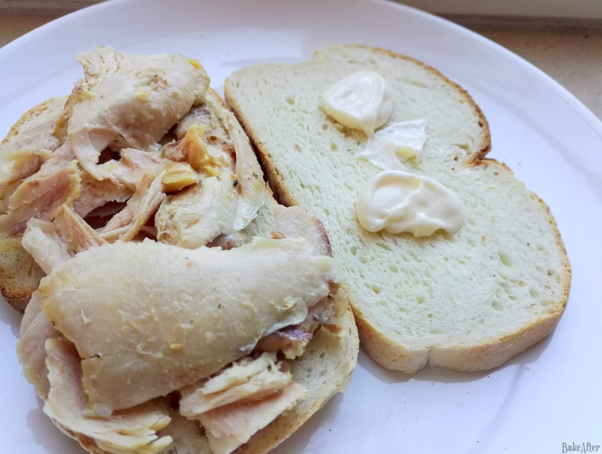 Hehehe, more recipes with just 3 ingredients… I have to admit, though, this one came out pretty good but fell just a little short of its potential. It needed something with a bit more punch than mayo alone, a little heat, some cheese, or a pat of butter to really take it to the next level. But hey, I was having one of those days and had leftover chicken lying around, so toast it was!