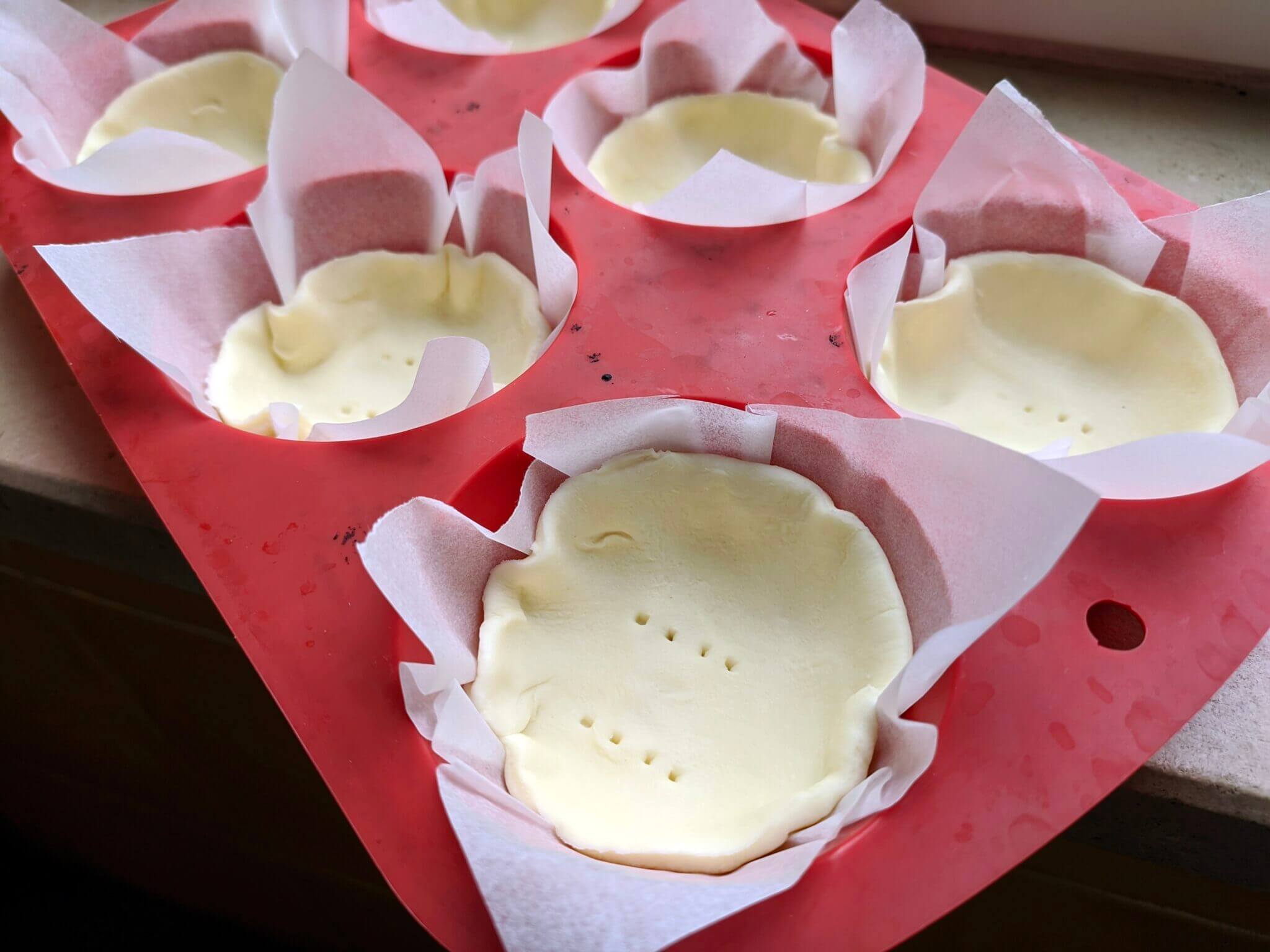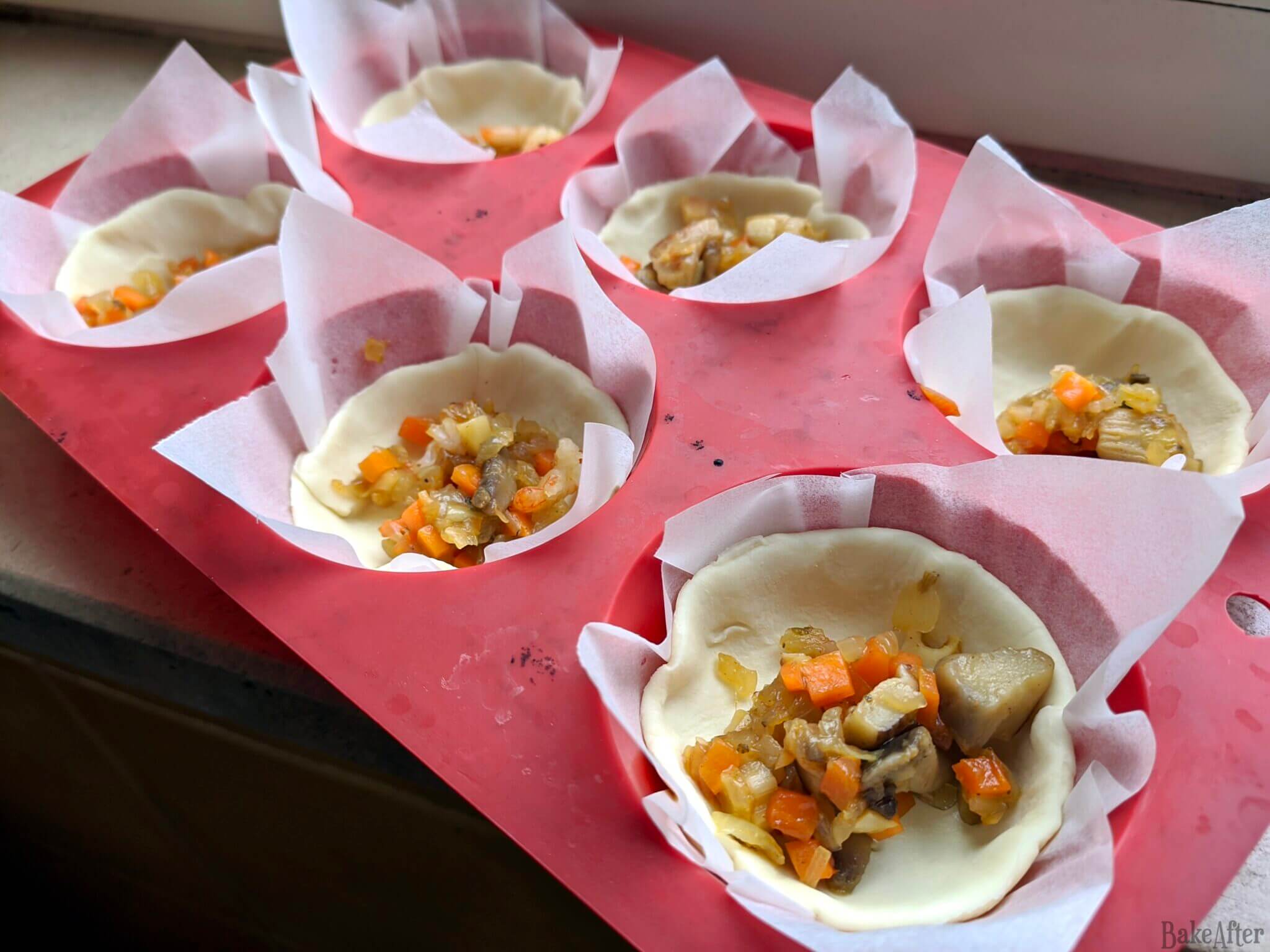 3. Preheat the oven to 200ºC (392°F) (or as recommended on the puff pastry package), cut circles of dough using a mold or glass, and place them in a muffin tin lined with muffin cups or nonstick paper.