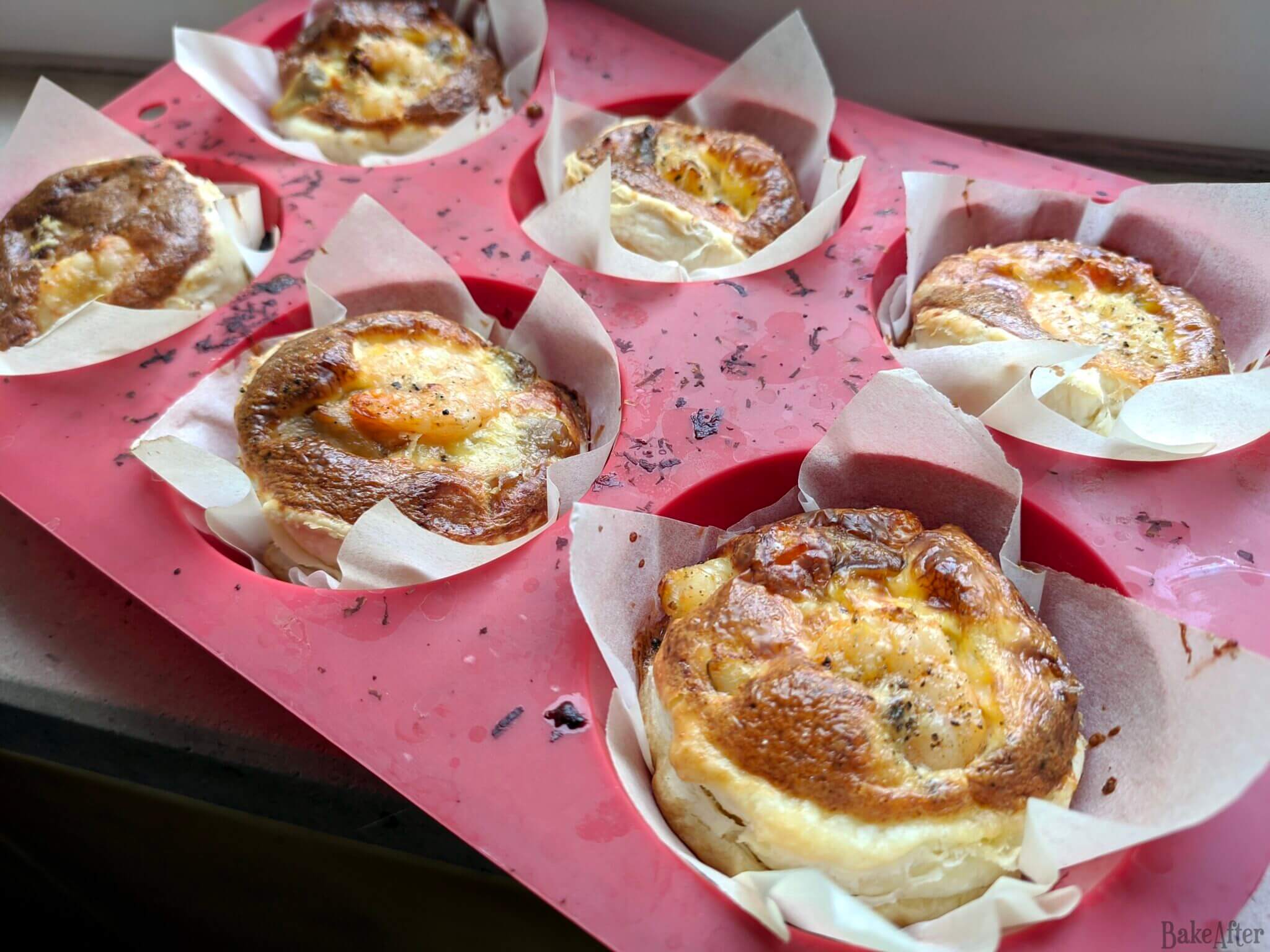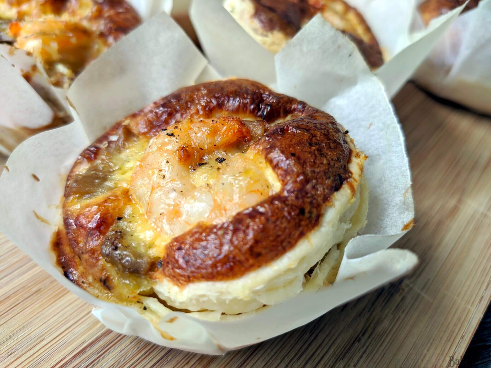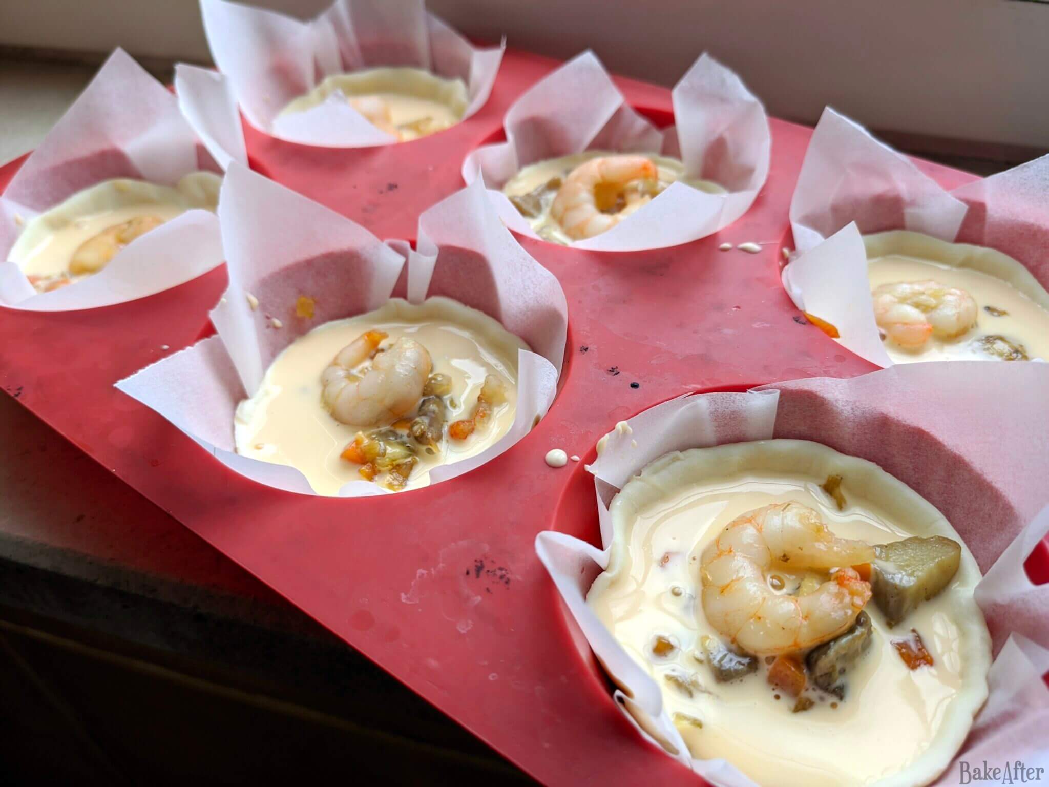 Notes: The flavor overall turned out good but as you know shrimp has little flavor, so you can always increase the spices or add more cheese or add some sauce to make these quiches a bit more decadent ;D