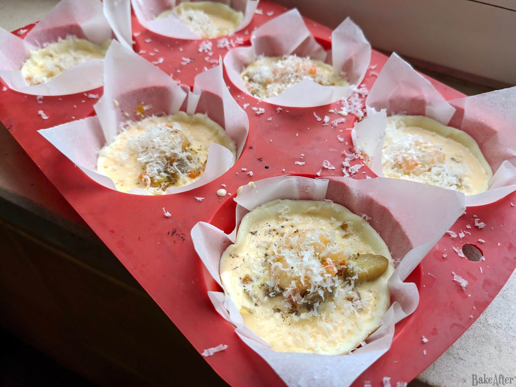 Make sure your vegetables are finely chopped so they fit nicely in the mini quiches and cook evenly.