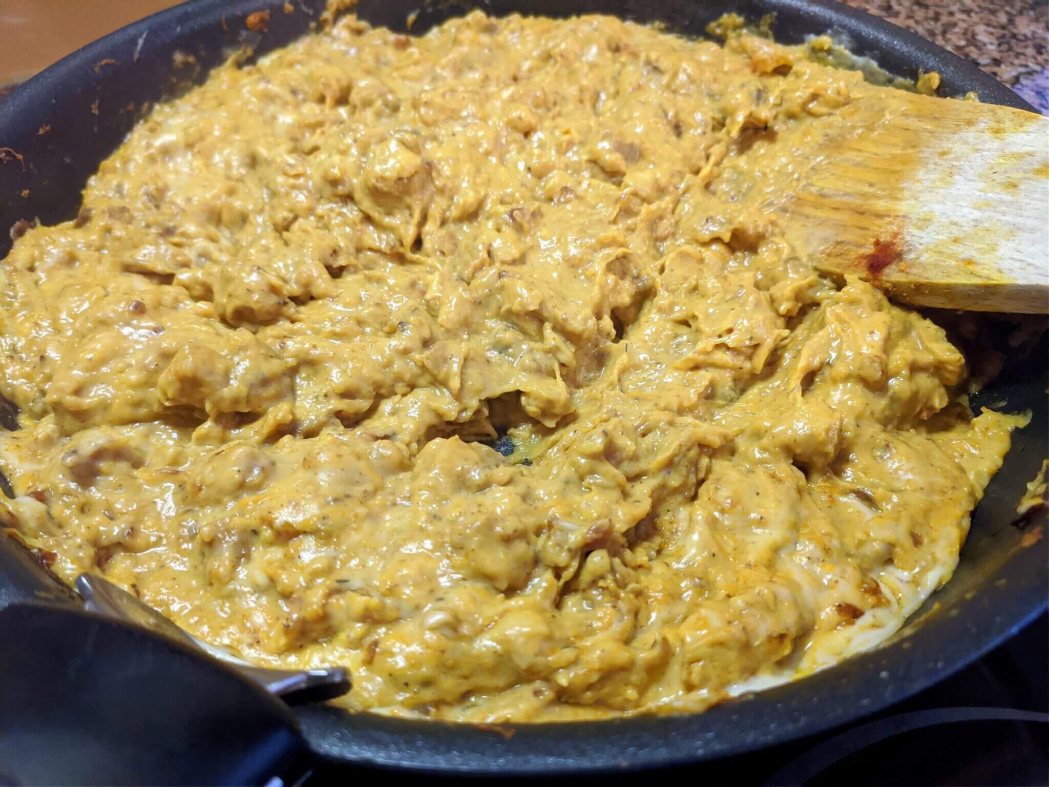 - Taste the curry and turkey mixture, adjust the seasoning, then add the béchamel sauce, stir the mixture and cook a little longer. Taste again and adjust the seasoning, then remove from the heat, when the texture and taste is to your liking!