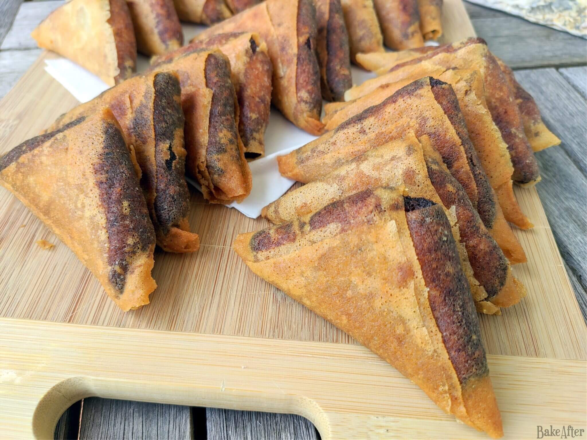 The triangle folding method is traditional, but if you’re struggling, watch a quick video tutorial online, it’s much easier to see it done than to read about it! Practice with one or two first before committing your filling.