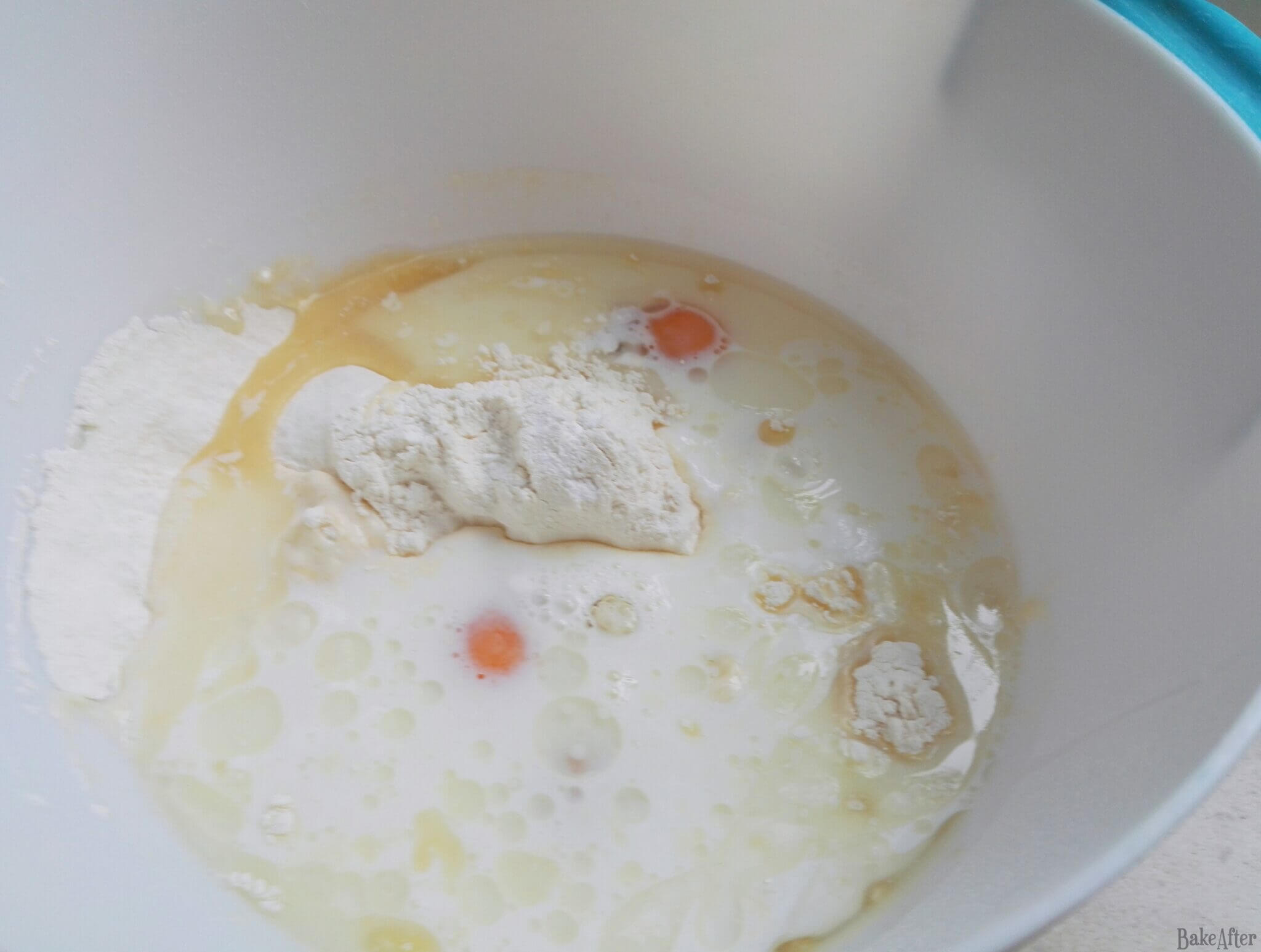 - Start by making the batter, add the eggs, olive oil, and milk to a bowl and whisk well until everything is mixed together, then gradually add the flour, whisking continuously until you have a very smooth mixture. Season with a pinch of salt and pepper and set aside.